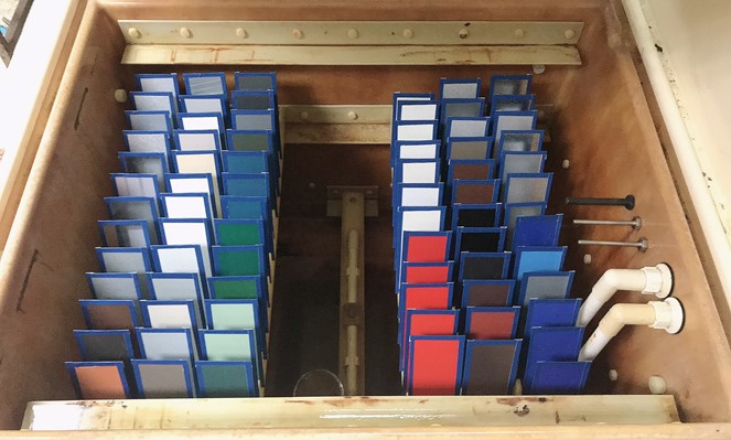 ภาพประกอบ : ชิ้นงานจริงในตู้ทำการทดสอบความทนละอองน้ำเกลือ