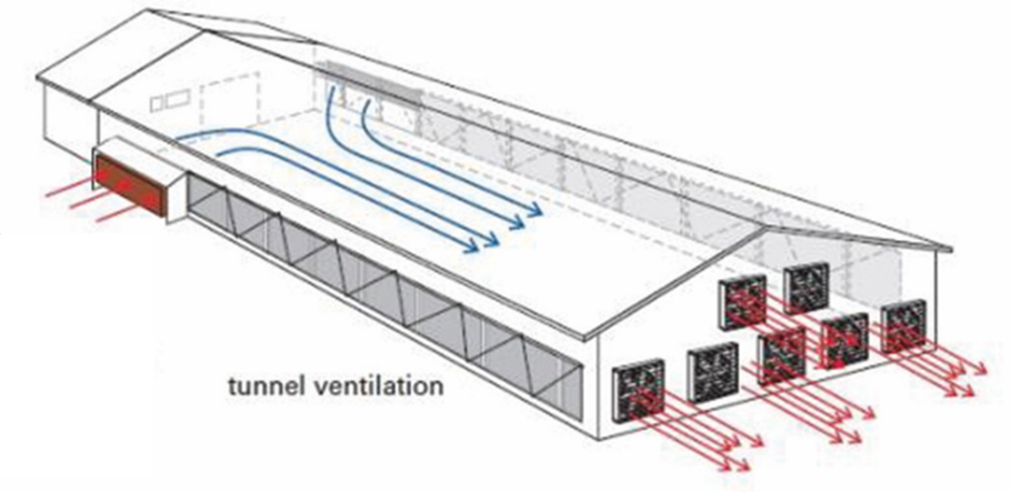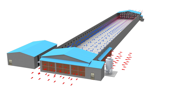 การหมุนเวียนอากาศภายในโรงเรือนสม่ำเสมอมาก มีการระบายเอาอากาศเสียออกไปภายนอกโรงเรือนโดยพัดลม เป็นการลดปัญหาระดับแอมโมเนียในโรงเรือนได้ไม่ให้สะสมจนเป็นสาเหตุให้ไก่ตายได้