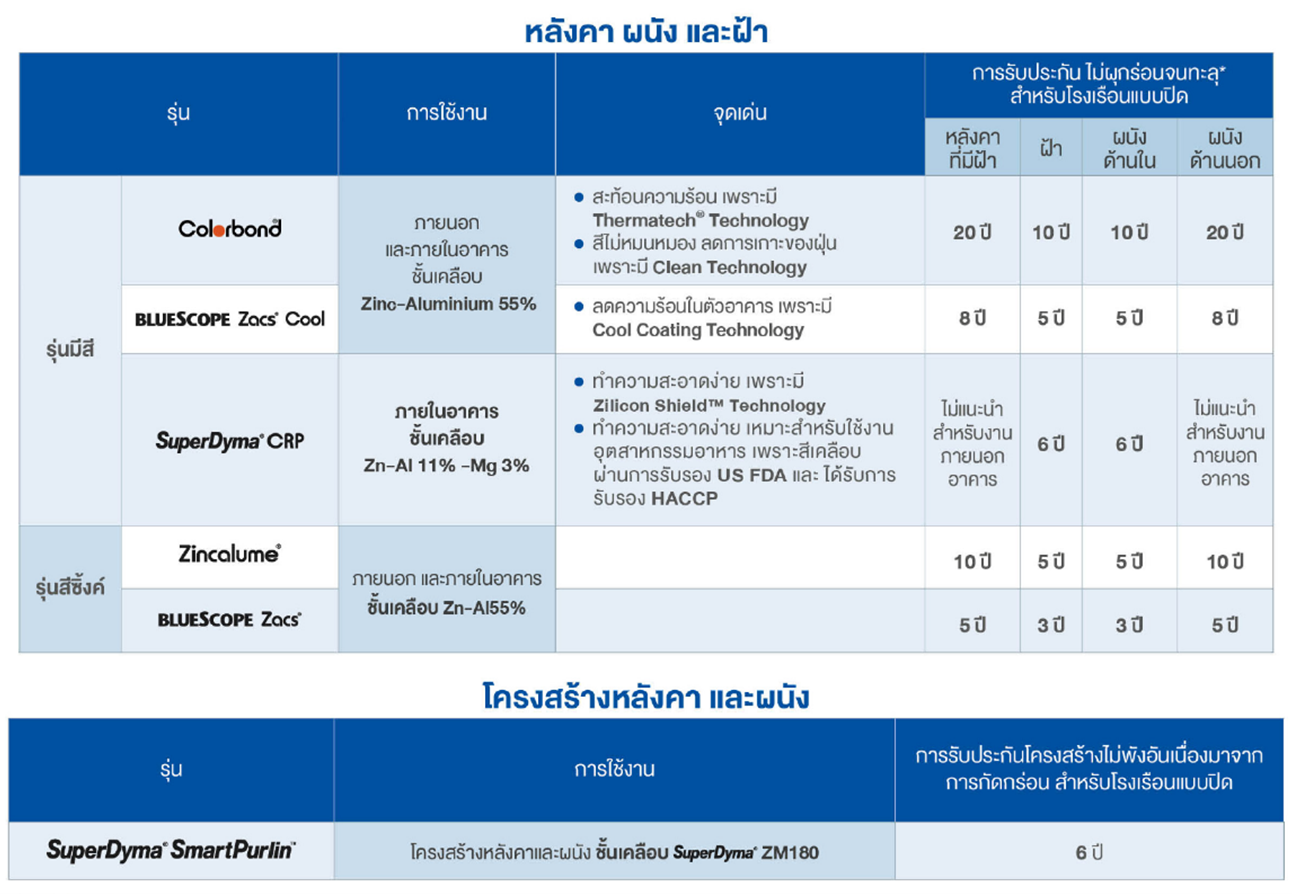 โครงหลังคา SuperDyma® จากบลูสโคป รับประกันโครงสร้างไม่พังจากการผุกร่อนสูงสุด 6 ปี* [ดูเงื่อนไขการรับประกัน ด้านล่าง]