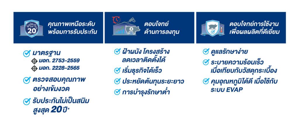 เรามีความเข้าใจในความต้องการเฉพาะของฟาร์มหมูในประเทศไทย ตอบโจทย์เจ้าของฟาร์มได้ดีที่สุด มาเพิ่มประสิทธิภาพฟาร์มหมูของคุณ.. ด้วยเมทัลชีทคุณภาพระดับพรีเมียม