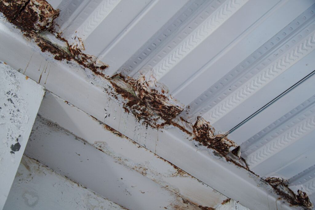 โรงเรือนที่สอง: ใช้วัสดุหลังคายี่ห้ออื่น ติดตั้งมาเพียง 6 ปี แต่เริ่มมีปัญหาขึ้นสนิมและต้องเริ่มซ่อมแซม