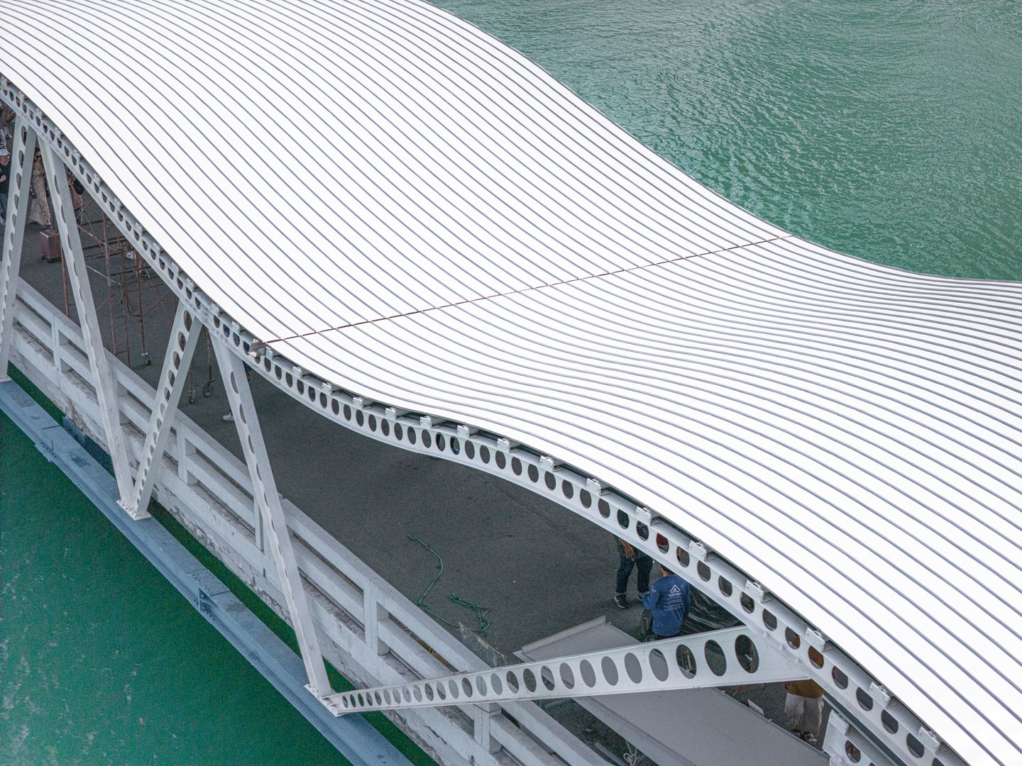 COLORBOND® steel สี Alloy Grey เป็นโทนสีเทาอ่อนที่เข้ากับสีน้ำทะเลและภูเขาได้อย่างกลมกลืน ทำให้สะพานดูสวยงามโดยไม่โดดเด่นเกินไป ช่วยเติมเต็มดีไซน์หลังคาท่าเรือแหลมบาลีฮาย ที่ถูกดีไซน์ให้มีลักษณะพริ้วไหว โค้งรับส่งกันคล้ายคลื่นทะเล เป็นอีกหนึ่งโครงการที่สะท้อนแนวคิดการดีไซน์และการเลือกใช้วัสดุเพื่อตอบโจทย์แนวคิดดังกล่าว ทั้งด้านความสวยงามและความเหมาะสมต่อการใช้งานได้อย่างลงตัว