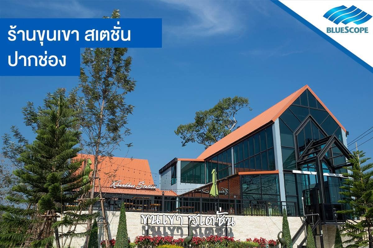 ร้านขุนเขาสเตชั่น ปากช่อง ร้านอาหารดีไซน์โมเดิร์นที่มีทั้งอาหารไทย สเต๊ก และอาหารฟิวชั่น หรือถ้าใครอยากรับชมวิวทิวเขา โดยร้านได้เลือกใช้ BlueScope Zacs®