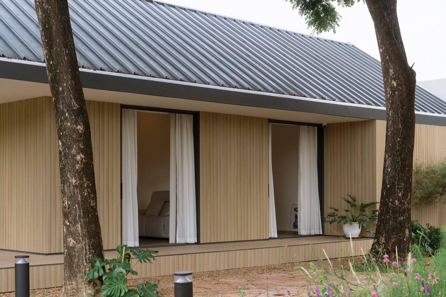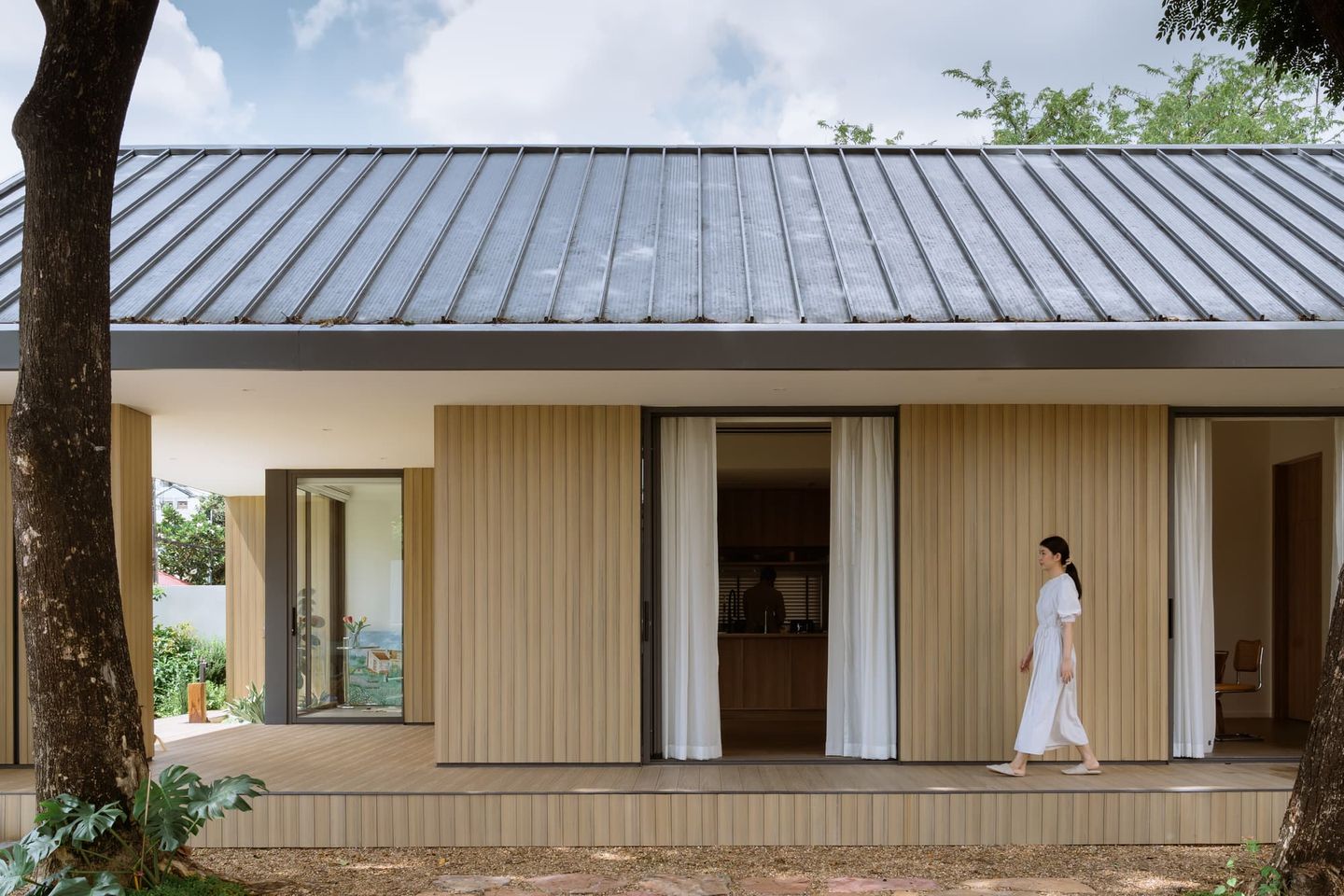 ที่มาของชื่อ Summer House เพราะเจ้าของบ้านชอบฤดูร้อน ชอบที่จะได้สัมผัสกับอากาศธรรมชาติ รวมไปถึงความโปร่งสบาย การเลือกใช้หลังคาก็เช่นเดียวกัน ด้วยความที่ตัวบ้านตั้งอยู่ใต้ต้นไม้ใหญ่ จึงมักมีเศษกิ่งไม้ตกใส่หลังคาอยู่บ่อยครั้ง หลังคาเมทัลชีทจึงตอบโจทย์เรื่องความทนทาน โดยเฉพาะตัวปิดขอบชายคาที่ยาวตลอดความยาวของตัวบ้าน จะต้องเลือกใช้แผ่นเมทัลชีทที่มีความหนาเหมาะสม เพื่อให้จบงานได้เรียบร้อย