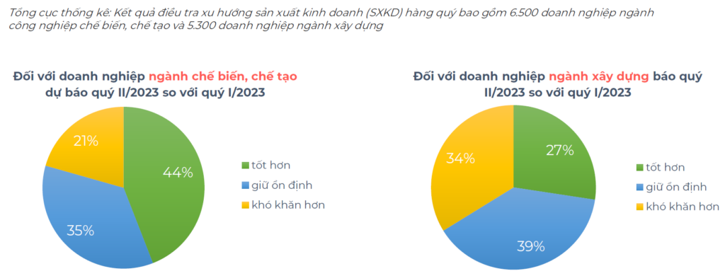 Kết quả khảo sát của Tổng Cục Thống kê về niềm tin của doanh nghiệp ngành chế biến chế tạo và doanh nghiệp ngành xây dựng cũng đồng hướng với những gì ông Dũng nhận định. Đa số các doanh nghiệp được khảo sát đều có niềm tin thị trường sẽ ổn định và tốt lên trong Quý II/2023.