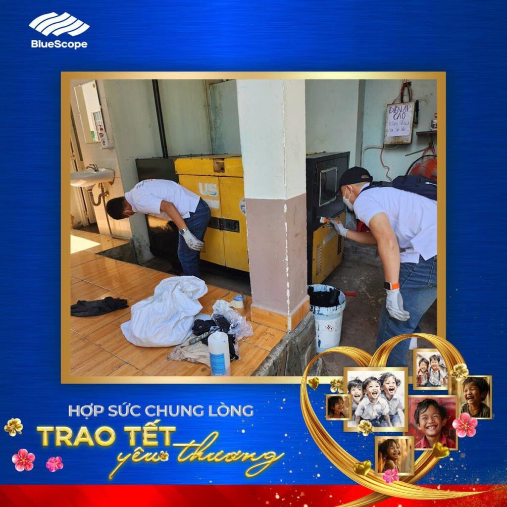 Không gian yêu thương với hoạt động sơn sữa tường, cửa, quét dọn khuôn viên, kiểm tra các thiết bị để các em có một nơi học tập, sinh hoạt đẹp, thoáng đãng, an toàn.