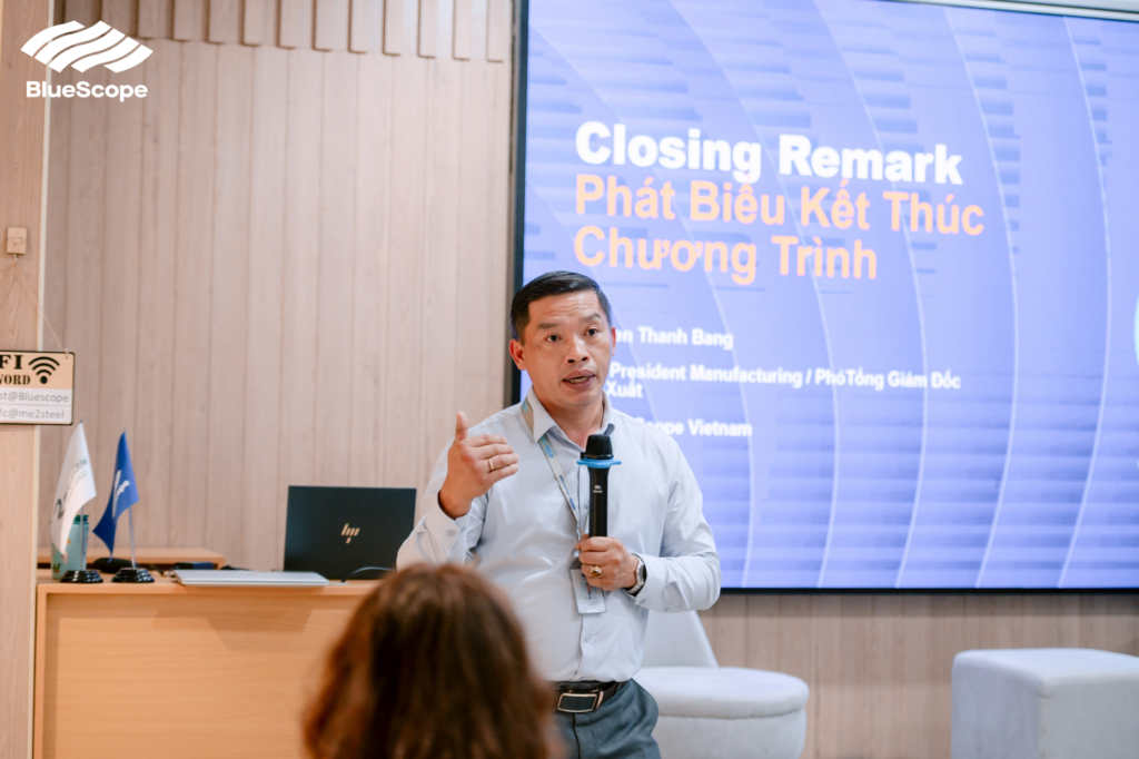 Phát biểu kết thúc chương trình của Ông Nguyễn Thanh Bằng – Phó Tổng Giám đốc sản xuất NS BlueScope Việt Nam