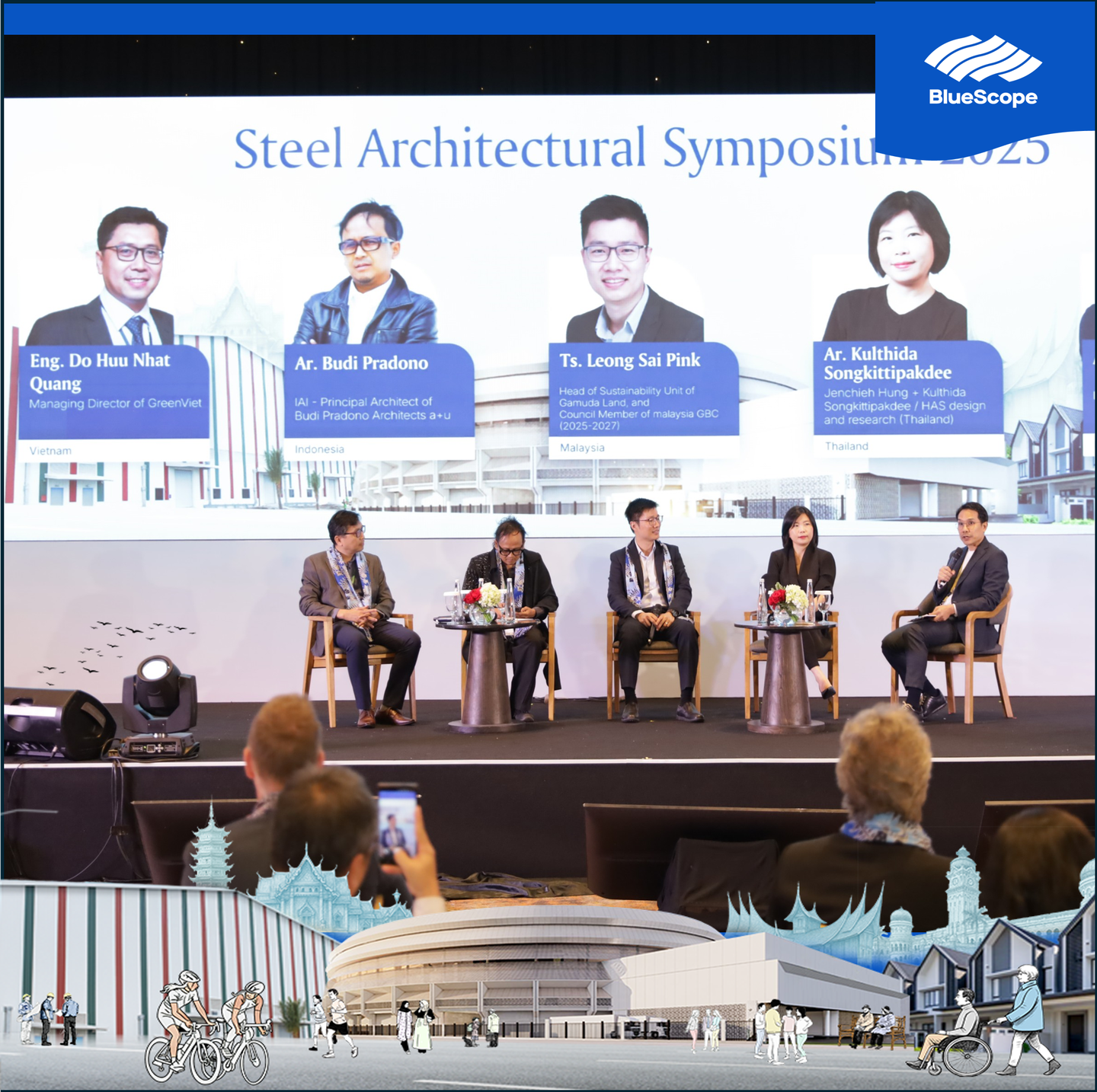 Ngày 27/11 vừa qua, hội thảo “Kiến tạo tương lai vững vàng: Tính di sản và hiện đại trong kiến trúc thép” tại Jakarta được tổ chức bởi BlueScope với sự đồng hành của Hiệp hội Kiến trúc sư Indonesia (IAI), Viện Kiến trúc sư Malaysia (PAM), Hiệp hội Kiến trúc sư Xiêm dưới sự bảo trợ của Hoàng gia (ASA), Đại học Kiến trúc Thành phố Hồ Chí Minh (UAH), Phòng Thương mại Australia tại Singapore đã quy tụ những kiến trúc sư hàng đầu ASEAN, mang đến những góc nhìn thực tiễn từ các chuyên gia và kiến trúc sư quốc tế xoay quanh nội dung: